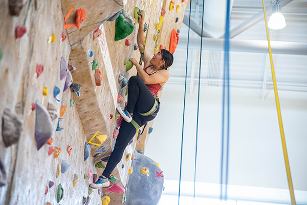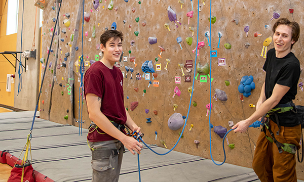 Climbing is a great way to get in a fun and exciting work out. You can use the climbing shoes provided by the climbing wall in the SRC to start bouldering, or join a belay clinic by clicking below to get started!